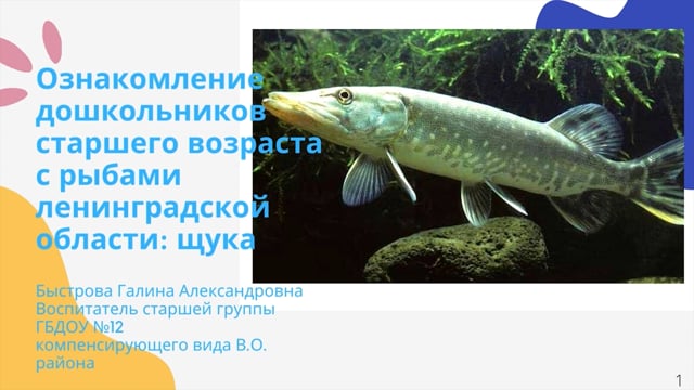 "Ознакомление дошкольников с рыбами Ленинградской области. Щука"